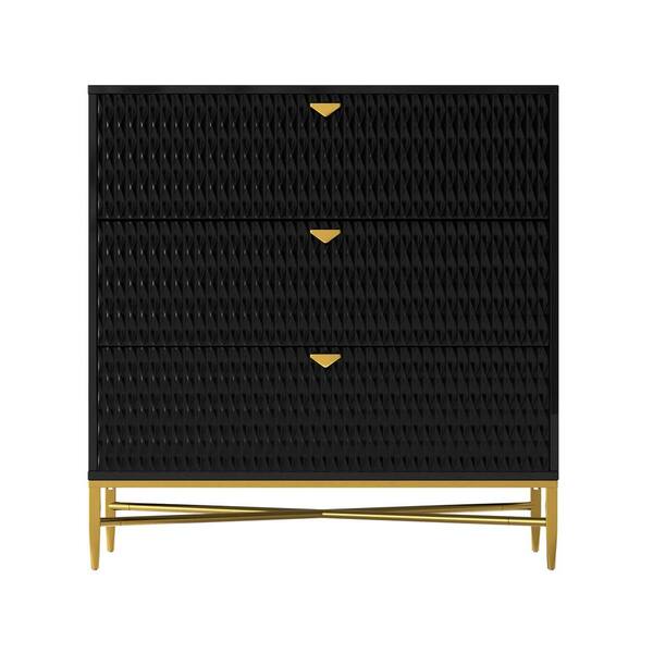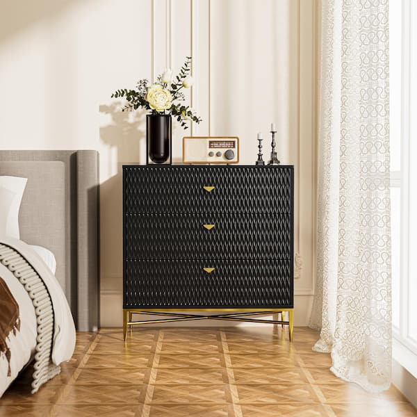 Black 3-Drawer Wood Nightstand with Square Support Legs