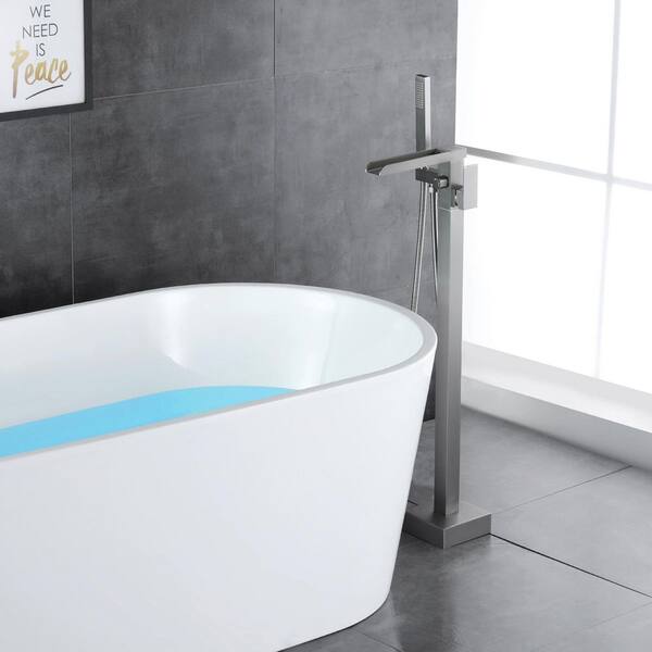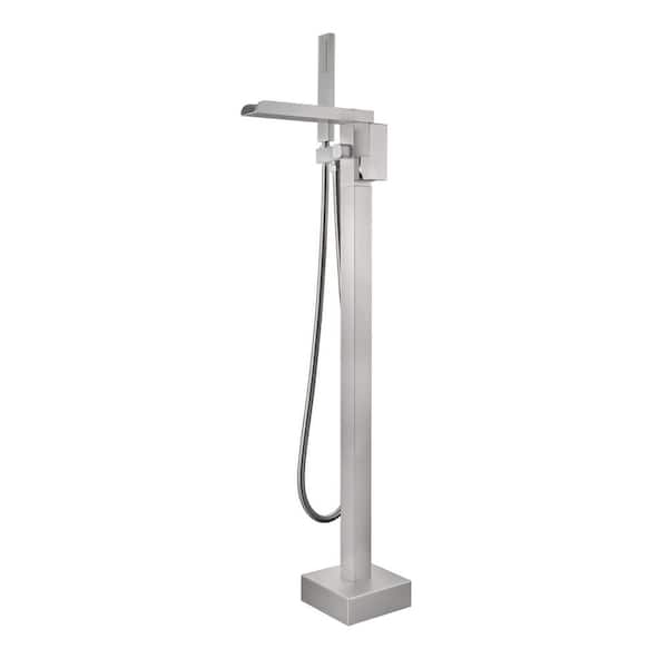 Floor Mount Single Handle Freestanding Tub Faucet with Hand Shower in Brushed Nickel