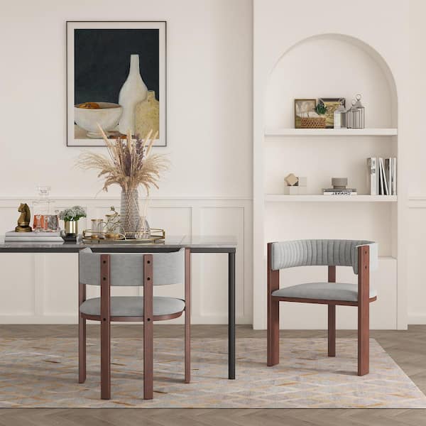 Gray Fabric Dining Chairs with Curved Back (Set of 2)