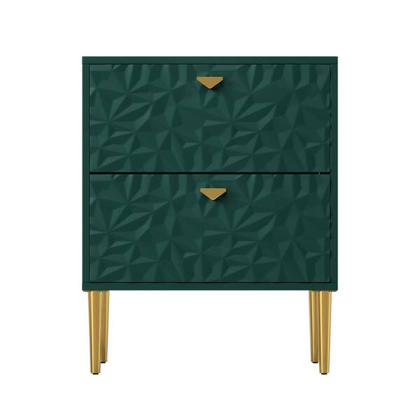 Green 2-Drawer Wood Nightstand with Tapered Support Legs