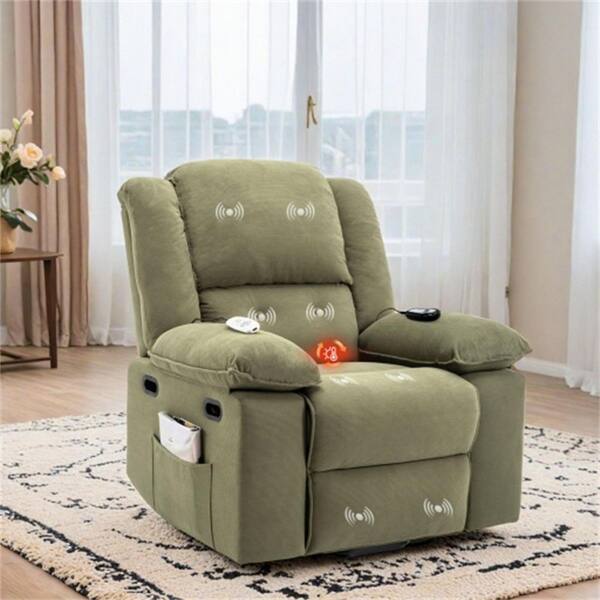 Green Corduroy Power Lift Recliner Chair with Massage and Heating, Recliner with Infinite Position and Side Pocket