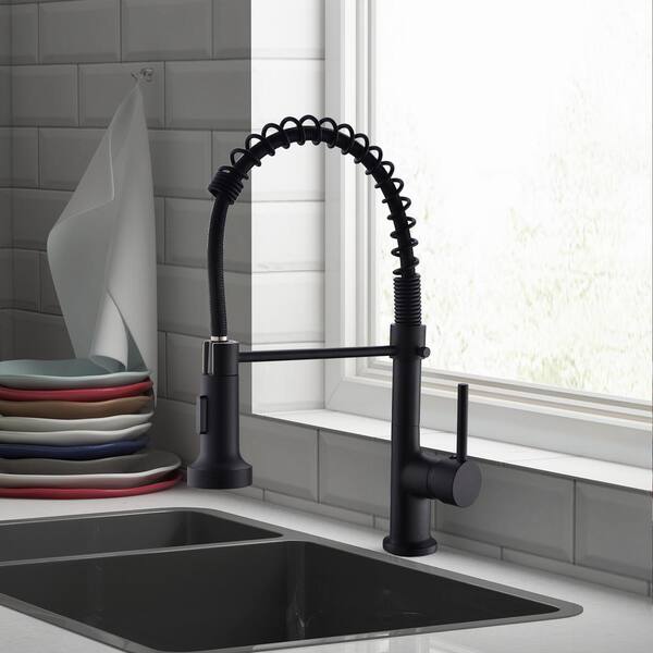 Kitchen Faucet Brass Single-Handle Pull-Down Sprayer Kitchen Faucet in Matte Black