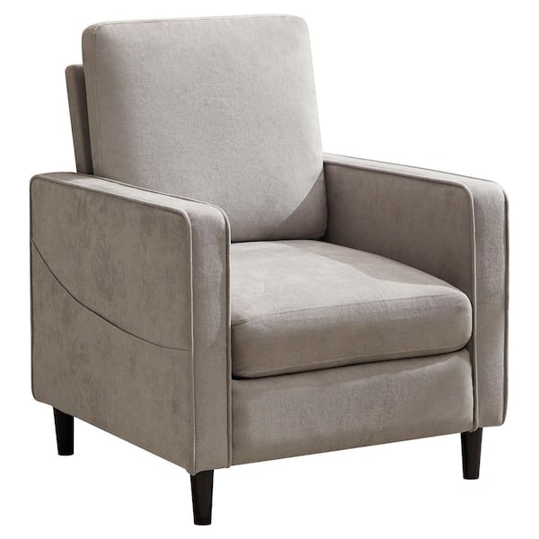 Light Gray Accent Chair Modern Linen Fabric Armchair for Living Room Sofa Chair