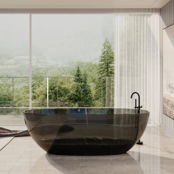 Modern 67 in. x 30 in. Soaking Transparent Resin Bathtub with Center Drain and Hose in Dark Gray