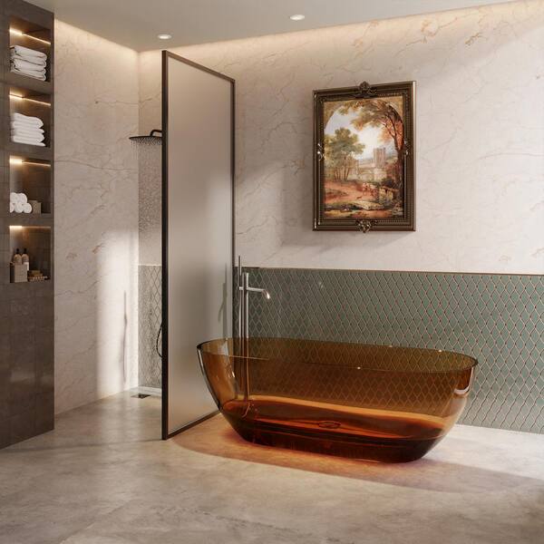 Modern 69 in. x 30 in. Soaking Transparent Resin Bathtub with Center Drain and Hose in Deep Brown