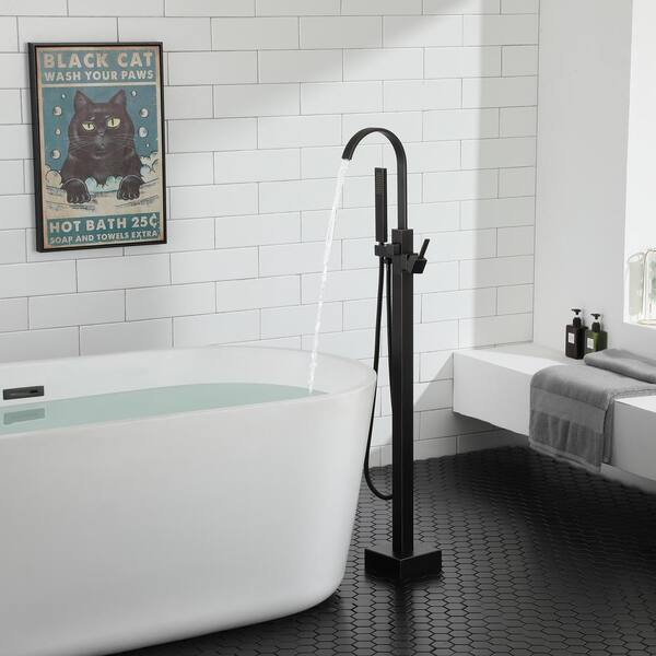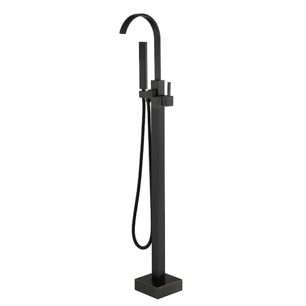 Modern Single-Handle Freestanding Tub Faucet with Handheld Shower, Water Supply Hoses and Hardware in. Oil Rubbed Bronze