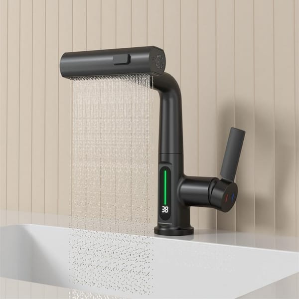 Single Handle Pull Out Sprayer Kitchen Faucet in Matte Black with LED Temperature Digital Display