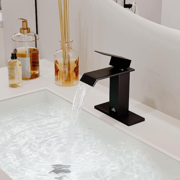 Single Handle Stainless Steel Bathroom Faucet Sink Faucet with Deckplate Included in Matte Black