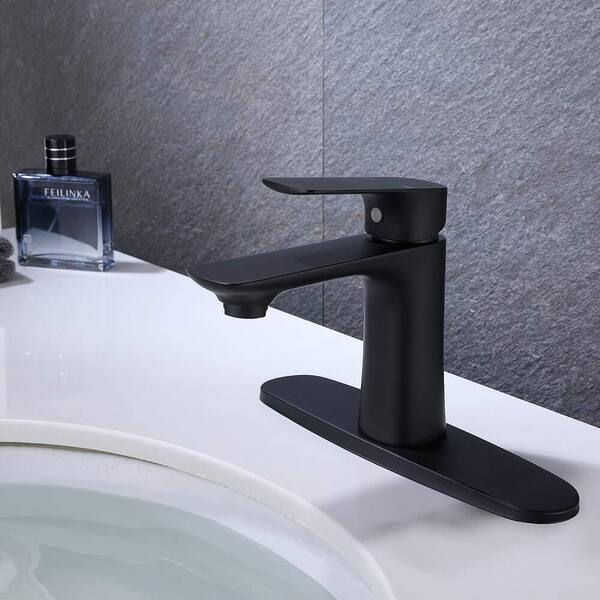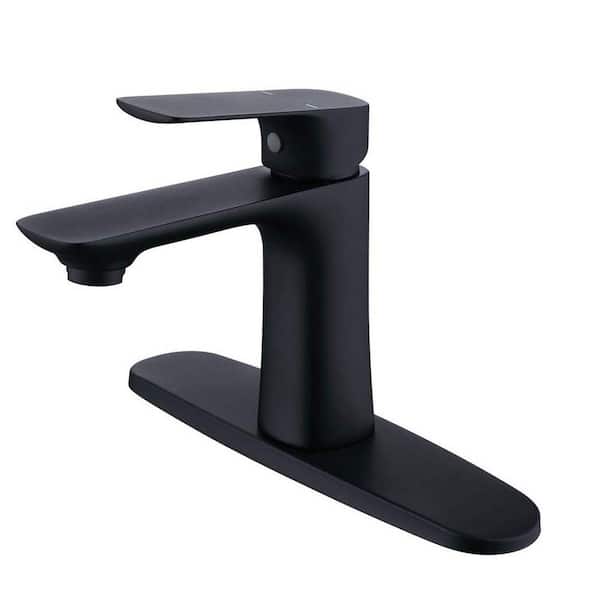 Single Hole Single Handle Kitchen Bathroom Faucet with cUPC Supply Hose and 10-in Deck Mount in Matte Black