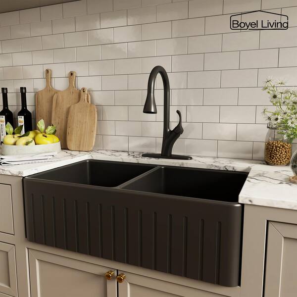 Stainless Steel Single Handle Pull Down Sprayer Kitchen Faucet with 3-Spray Patterns and Deck Plate in Matte Black