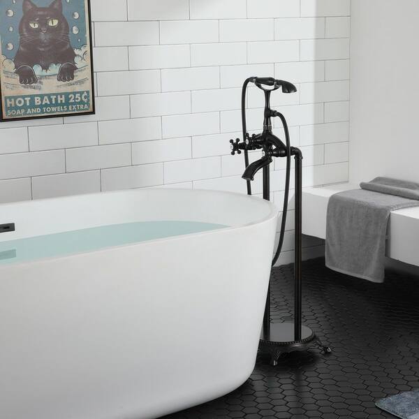 Vintage Floor Mount 3-Handle Freestanding Tub Faucet with Hand Shower and Water Supply Hoses in Oil Rubbed Bronze