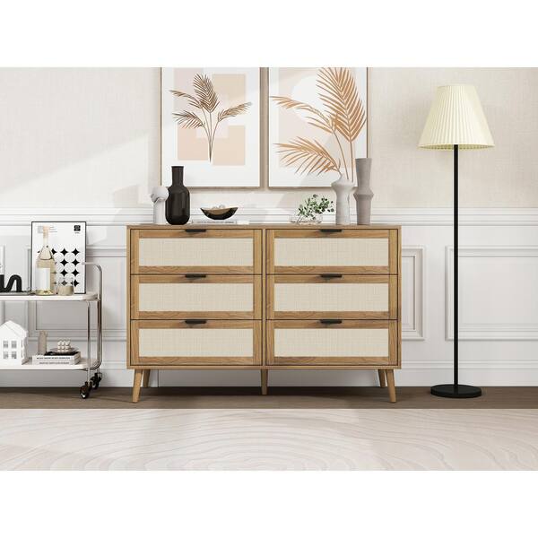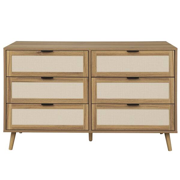 Walnut 30 in. Modern 6-Drawer Dresser Wood Cabinet