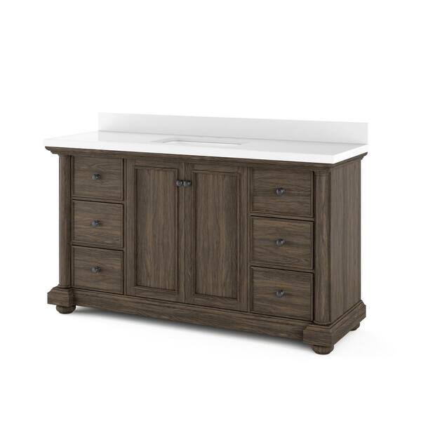 Bradford 60 in. W x 20 in. D Bath Vanity in Walnut with Quartz Stone Vanity Top in White with White Basin