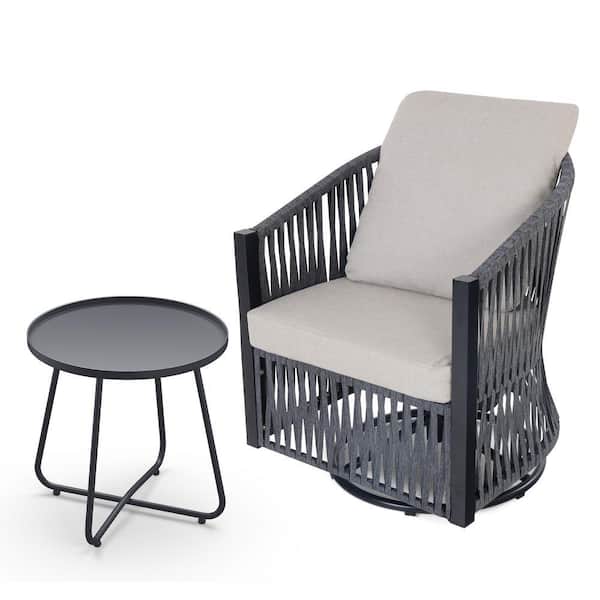 2-Pieces Patio Conversation Set - Indoor Outdoor Hand Woven Rope Furniture Set with Swivel Rocking Base