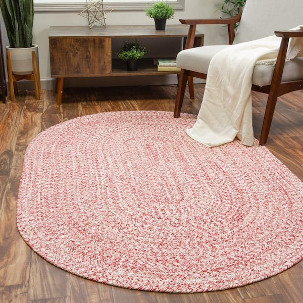 Braided Farmhouse Red 3 ft. x 5 ft. Oval Cotton Area Rug
