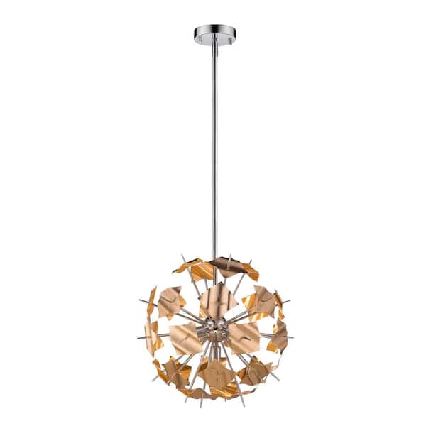 Branam 40-Watt 5-Light Chrome and Champagne Starburst Pendant Light with No Bulb Included