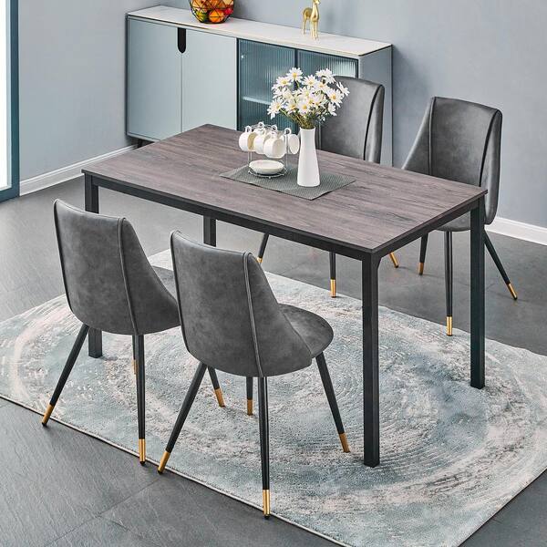 Brandt Smeg Charcoal Grey 5-Pieces Rectangle MDF Walnut Top Dining Table Chair Set with 4-Upholstered Dining Chair