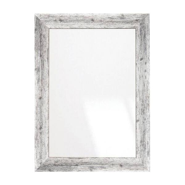 26.5 in. W x 39 in. H Weathered Timber Inspired Rustic White and Gray Sloped Framed Wall Mirror