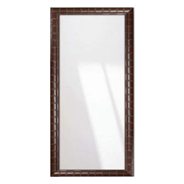 32 in. W x 66 in. H Rectangle Framed Dark Copper Bamboo Floor Mirror