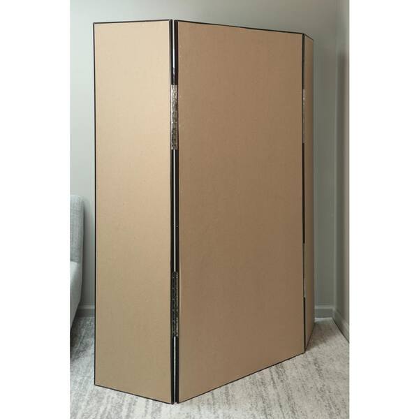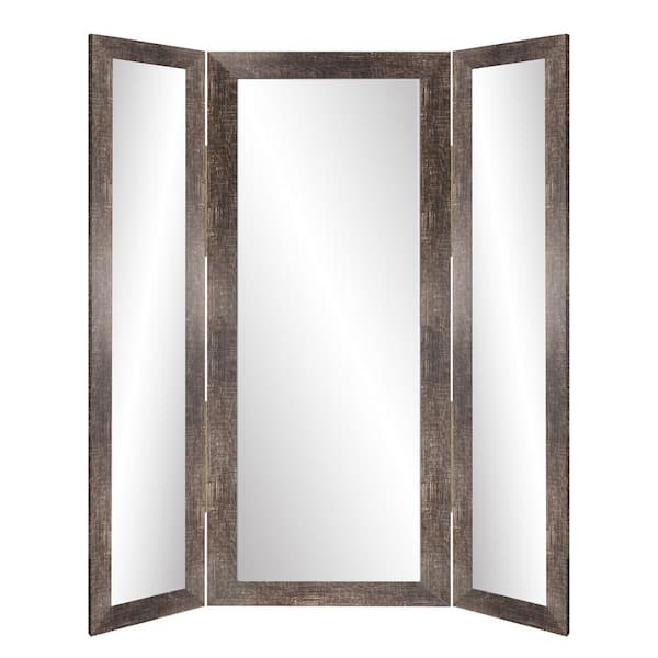 32 in. W x 71 in. H Rustic Brown Free Standing Tri-Fold Large Mirror with Gold Accents