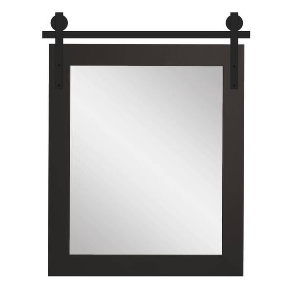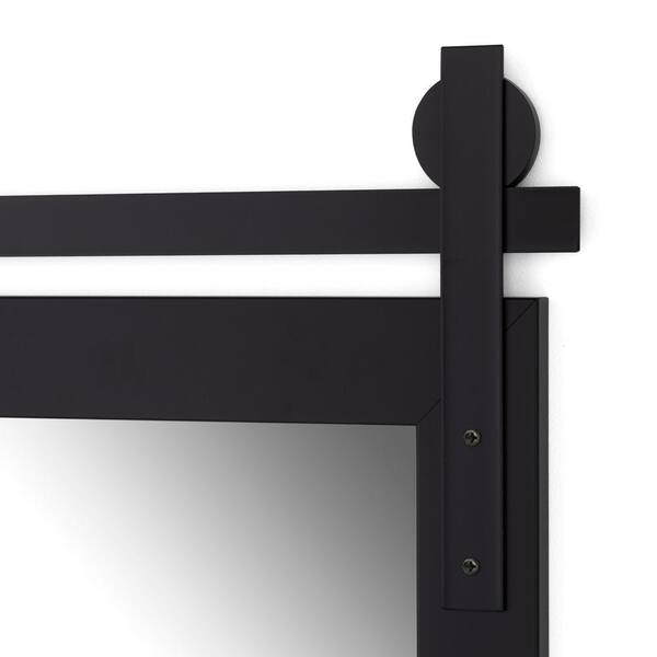 34 in. W x 43 in. H Rectangle Matte Black Framed Mirror with Barn Door Bracket