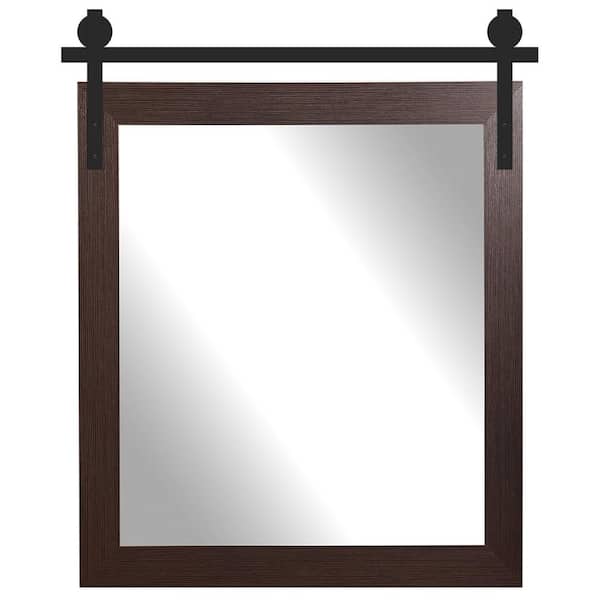 34 in. W x 51 in. H Dark Brown Rectangle Barn Door Framed Mirror
