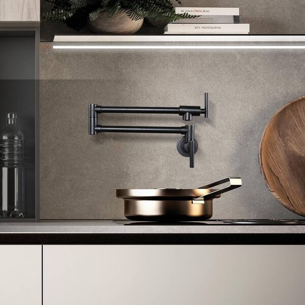 Brass Double Handle Wall Mount Pot Filler in Oil Rubbed Bronze