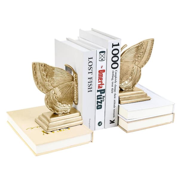 Brass Metal Decorative Butterfly Bookends, Heavy Sturdy Cast Iron Book Ends