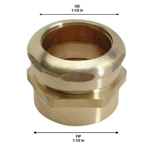 1-1/2 in. O.D. Compression x 1-1/2 in. FIP Brass Waste Connector with Tube Stop in Rough Finish