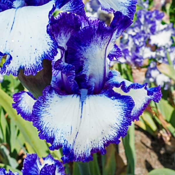 Mariposa Autumn Reblooming Iris, Live Bareroot Plant, White and Blue Flowering Perennial (5-Pack)