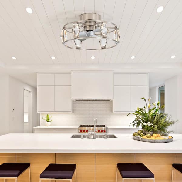 21 in. Indoor Satin Nickel Modern Caged 6-Speed Ceiling Fan with Light LED Light and Remote Control Included