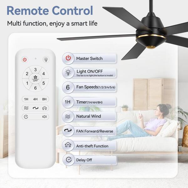 Adriana 52 in. Indoor 6-Fan Speeds Black Stylish Ceiling Fan with Reversible DC Motor, Downrod and Remote Included