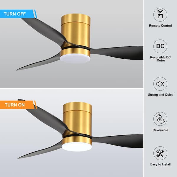 Clare 52 in. Integrated LED Indoor Black-Blade Gold Ceiling Fans with Light and Remote Control Included