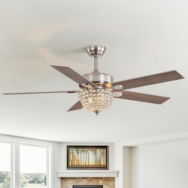 Costello 52 in. 2-Light Indoor Satin Nickel Modern Ceiling Fan with Crystal Light Kit and Remote Included