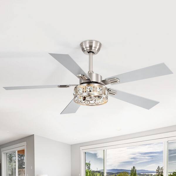 • Modern ceiling fan with crystal chandelier-inspired shade