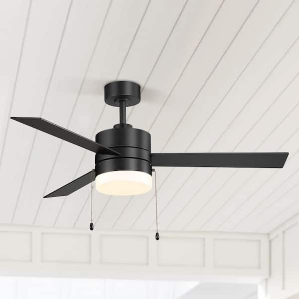 Primo 52 in. Indoor Black Standard Ceiling Fan with LED Bulbs with Pull Chains Control and Glass Light Kit