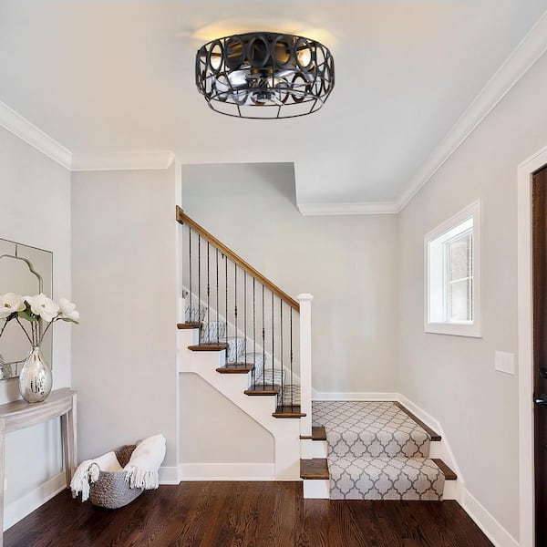 Sampson 12.5 in. 3-Light Indoor Black Caged Ceiling Fan with Light Kit and Remote Control Included