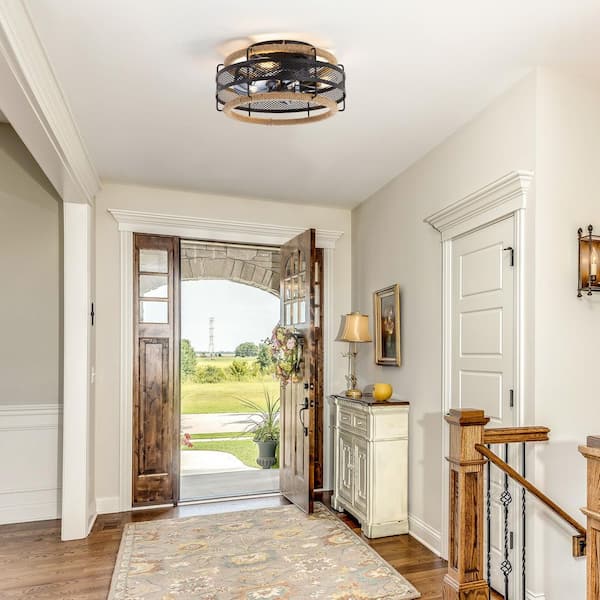 Sampson 12.5 in. Indoor 3-Light Black Low Profile Unique Ceiling Fan with Twine and Metal Light Kit and Remote Included