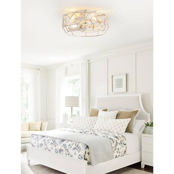 Sampson 12.5 in. Indoor White/Gold Caged Ceiling Fan with Light Kit and Remote Control Included