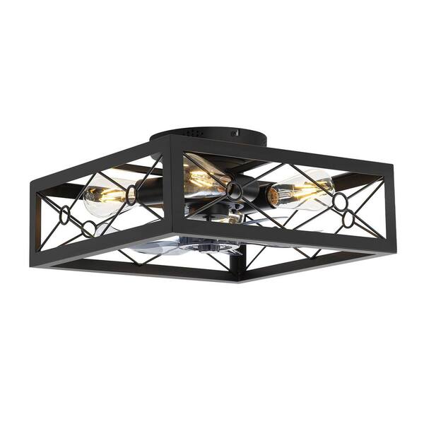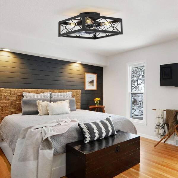 Square 16 in. Indoor Black Hugger Ceiling Fan with Light Kit and Remote Included
