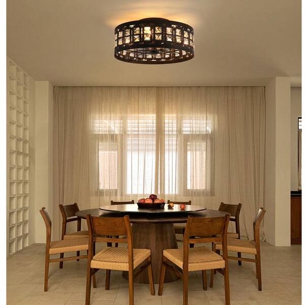 Webb 16.5 in. Indoor Black Flush Mount Ceiling Fan with Sparkling Light Kit, 6-Speed DC Motor and Remote Control