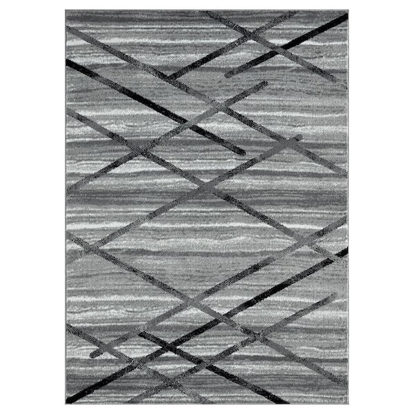 Breeze 3 ft. x 8 ft. Black Contemporary Modern Lattice Polypropylene Area rug