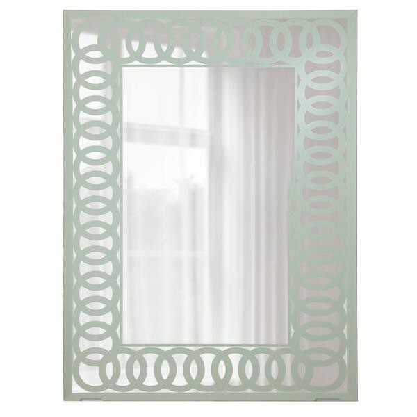 30 in. x 40 in. Frameless Mirror in Silk Screened Light Sage Green Pattern Embedded Border