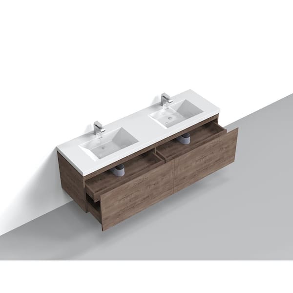 Bremen 72 in. W x 20 in D x 22.5 in H Double Sink Floating Bath Vanity with Inside Drawers in Smoke Oak with White Top