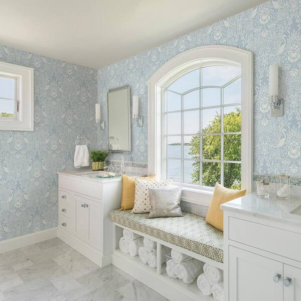 56.4 sq. ft. Elegans Light Blue Crane Toile Wallpaper