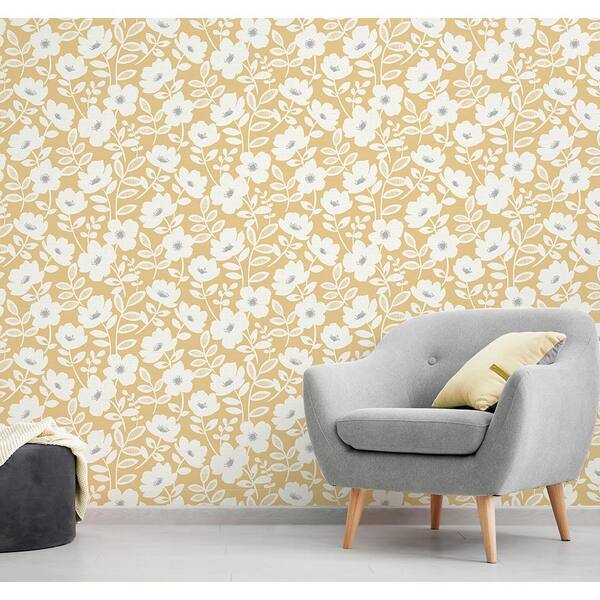 Bergman Mustard Scandi Flower Mustard Wallpaper Sample