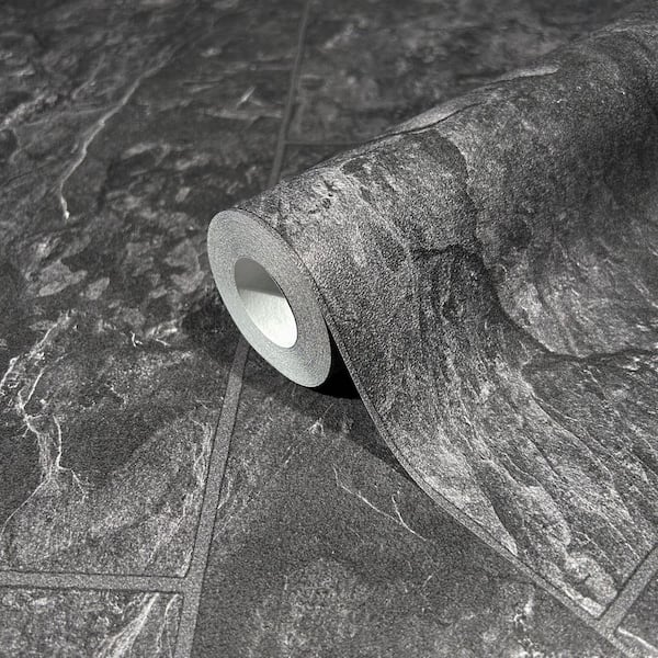 Bricks and More Collection Anthracite Black Stone Tile Matte Finish Vinyl on Non-Woven Non-Pasted Wallpaper Roll