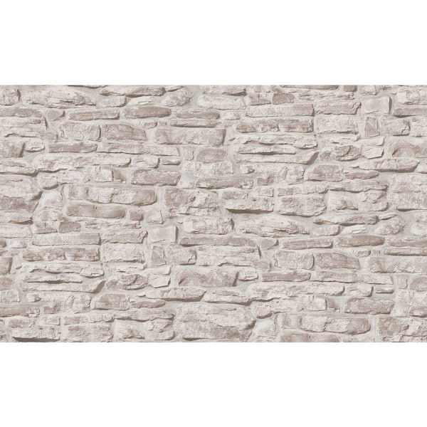 Bricks and More Collection Beige Rustic Stone Wall Matte Finish Vinyl on Non-Woven Non-Pasted Wallpaper Roll