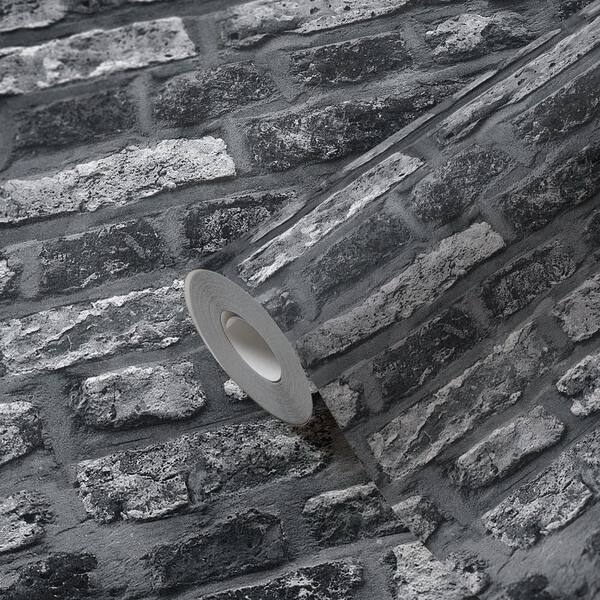 Bricks and More Collection Black Realistic Brick Matte Finish Vinyl on Non-Woven Non-Pasted Wallpaper Roll