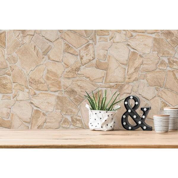 Bricks and More Collection Cream/Beige Claystone Cottage Motif Matte Finish Vinyl Non-Woven Non-Pasted Wallpaper Sample